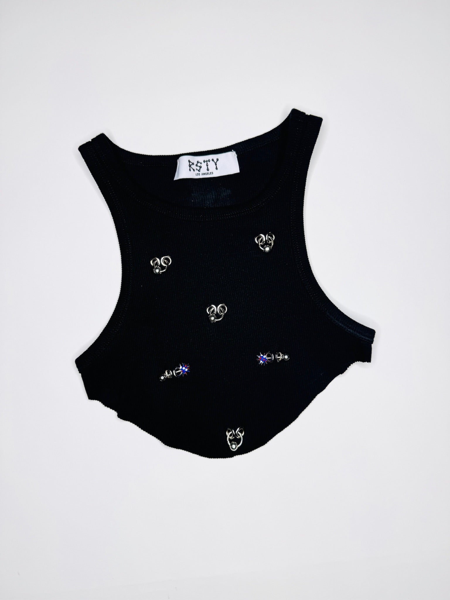 One-of-a-kind pierced black tank top. Size S.