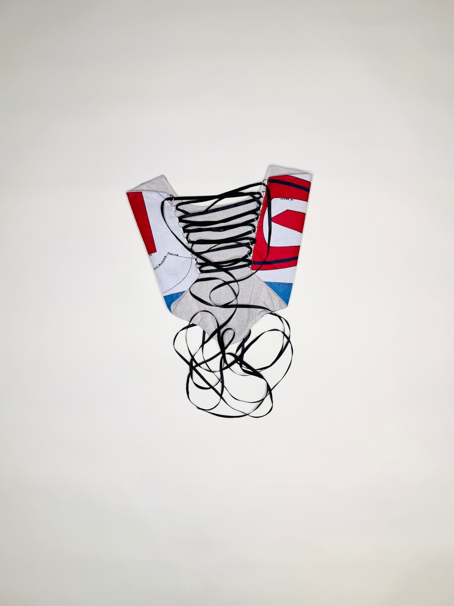 One-of-a-kind vintage doll sewing pattern corset. Handmade with 100% Linen lining. Back lace-up rope closures adjustable from sizes XS - Medium.