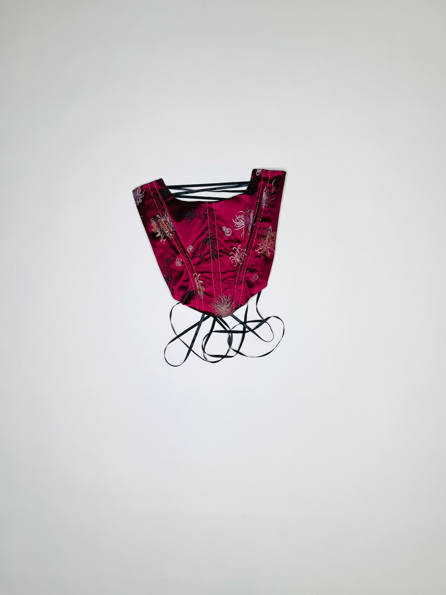 One-of-a-kind vintage floral jacquard print corset. Handmade with 100% Linen lining. Adjustable back lace-up ribbon closure from sizes XS - Medium.