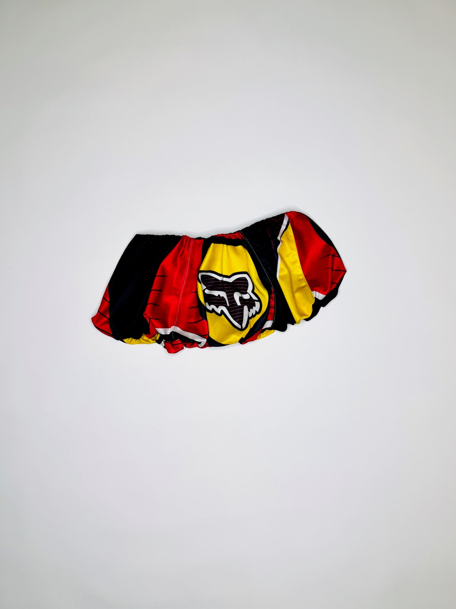 One-of-a-kind low rise Fox Racing jersey bubble skirt. Fully lined with a pull on, elastic waistband. Will fit size S-L.