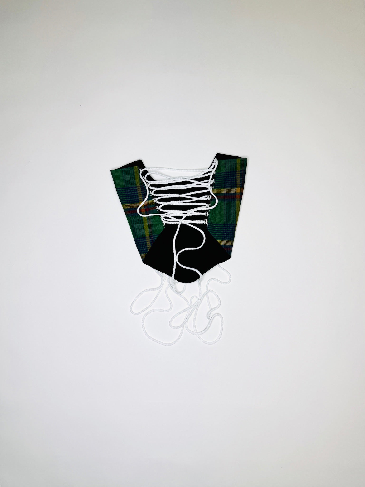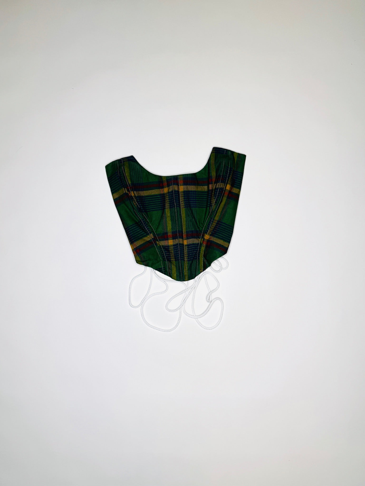 One-of-a-kind vintage plaid print corset. Handmade with 100% Linen lining. Adjustable back lace-up rope closure from sizes XS - Medium.