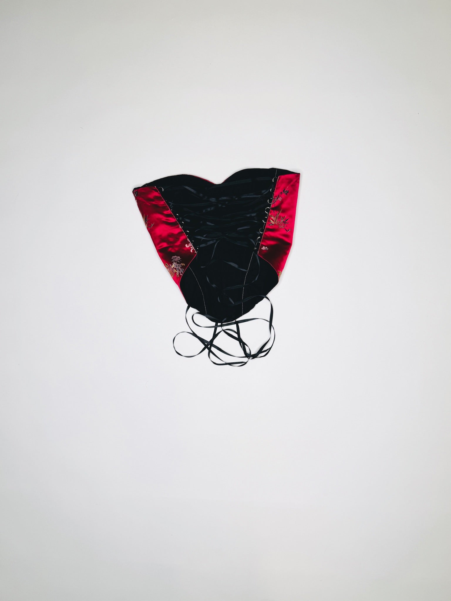 One-of-a-kind vintage floral jacquard print corset. Handmade with 100% Linen lining. Adjustable back lace-up ribbon closure from sizes XS - Medium.