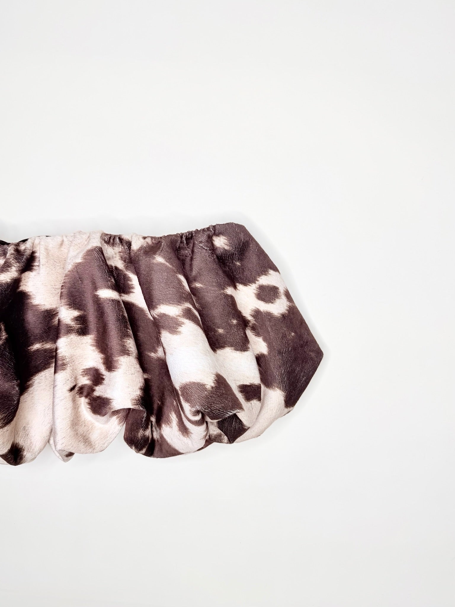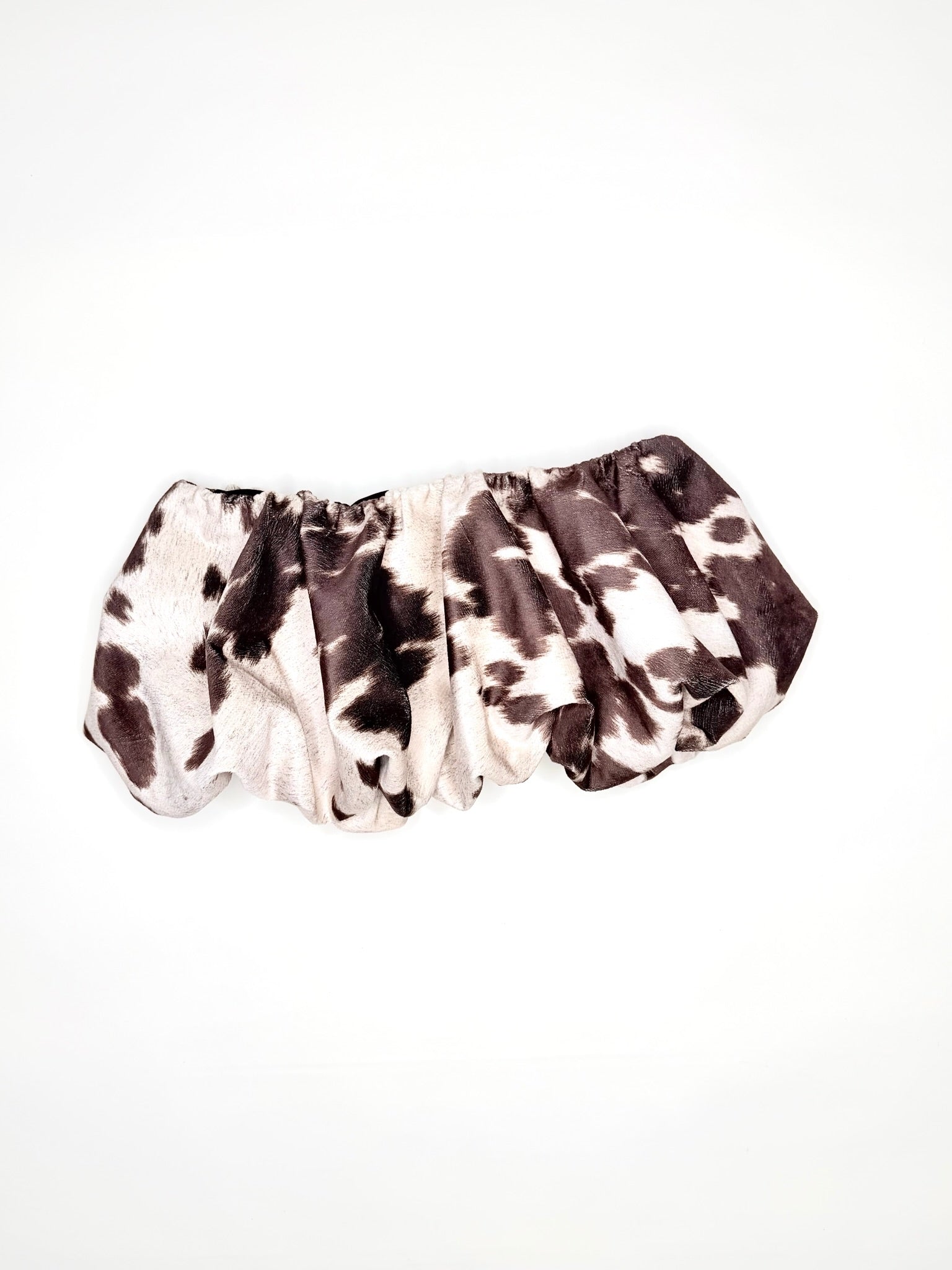 One-of-a-kind low rise brown cow print bubble skirt. Fully lined with a pull on, elastic waistband. Will fit size S-L.