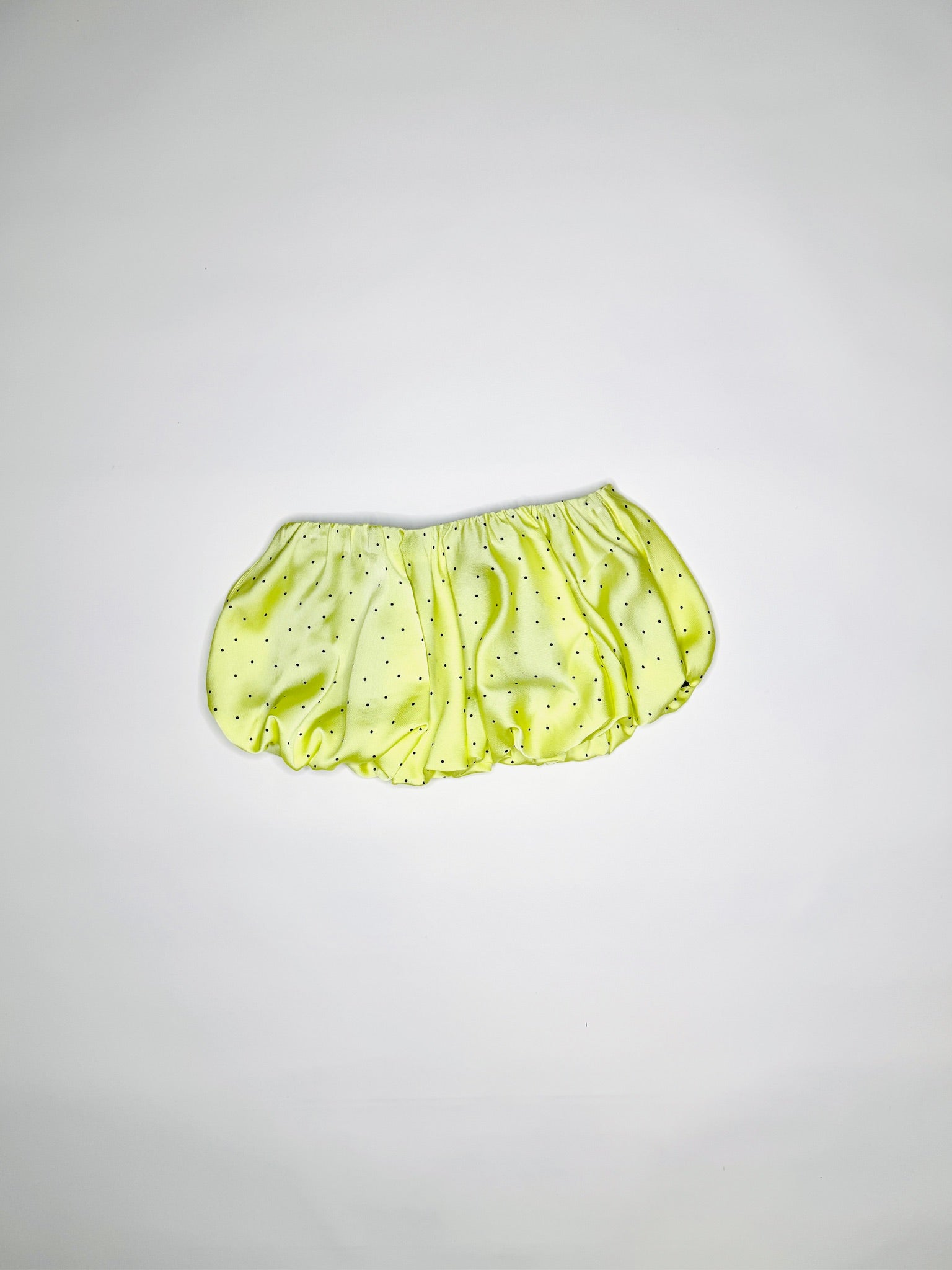 One-of-a-kind low rise polka dot bubble skirt. Fully lined with a pull on, elastic waistband. Will fit size S-L.