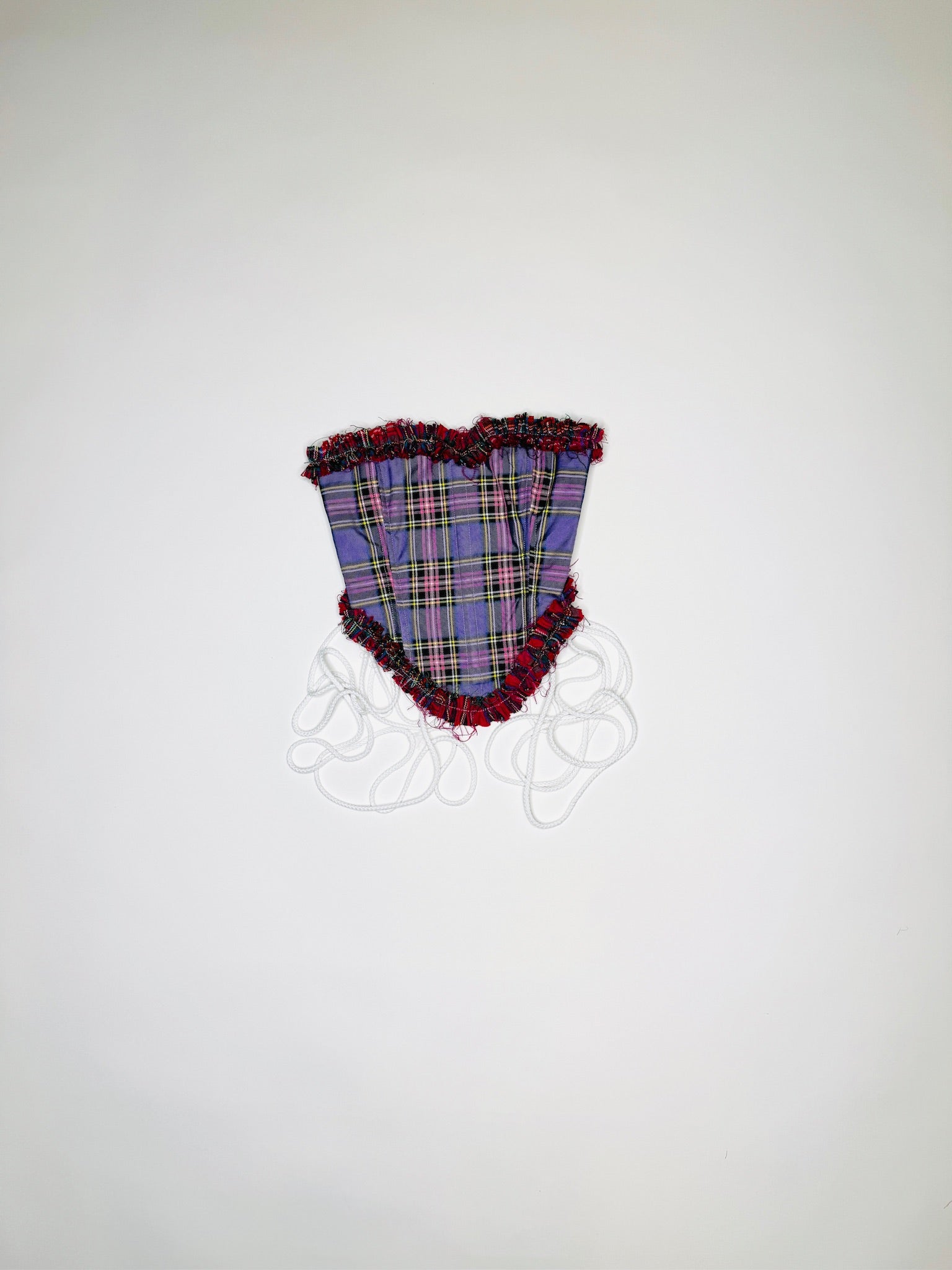One-of-a-kind purple plaid print corset. Handmade with 100% Linen lining. Back lace-up rope closures adjustable from sizes XS - Medium.