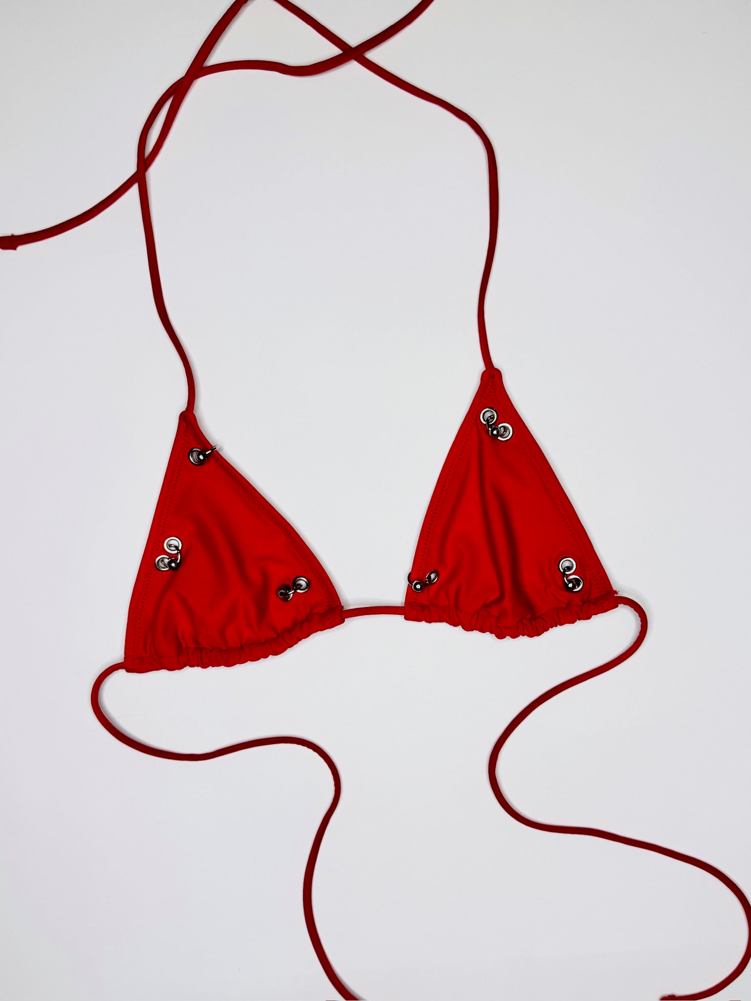 One-of-a-kind pierced Red bikini top. Size XS.