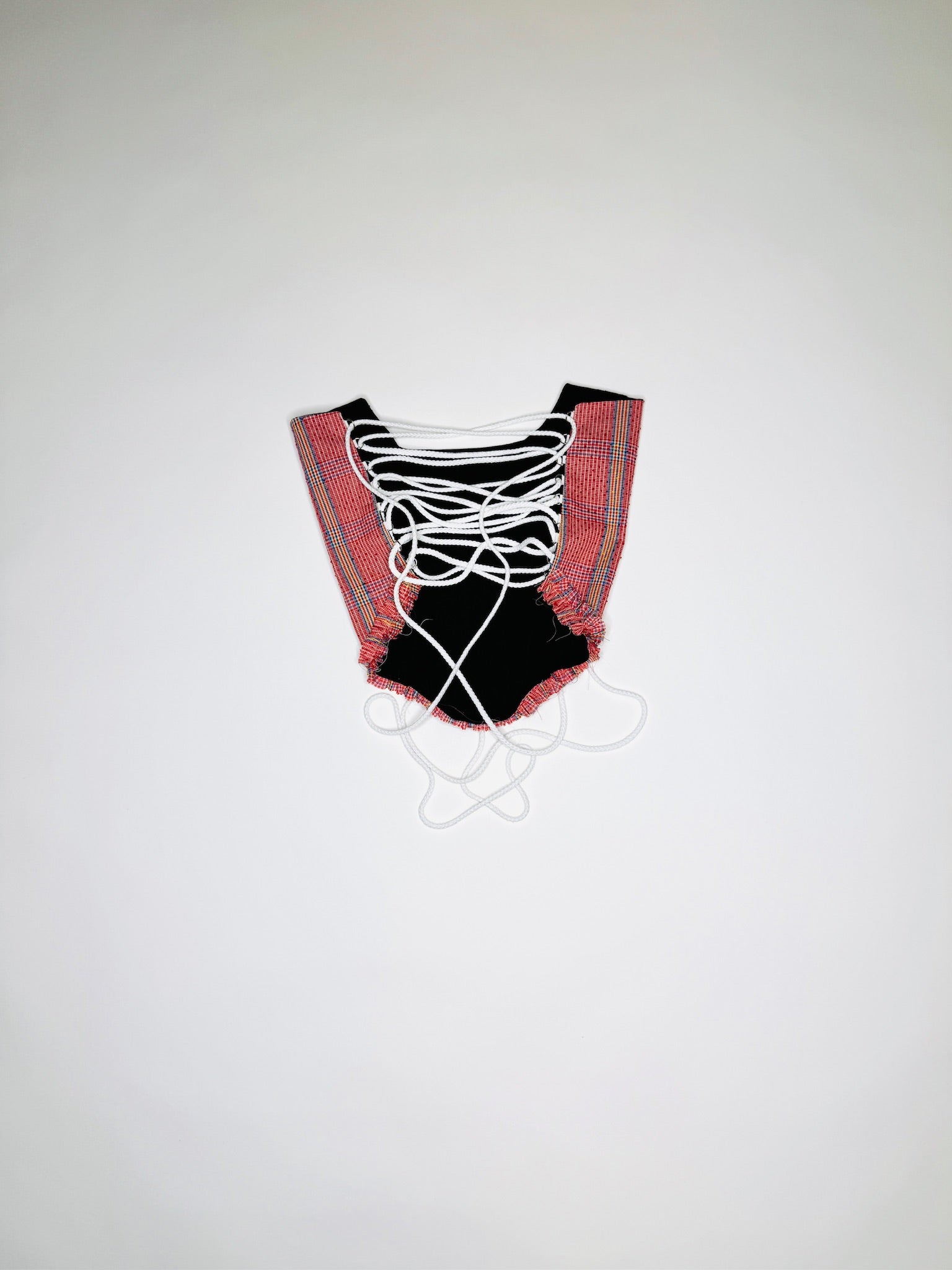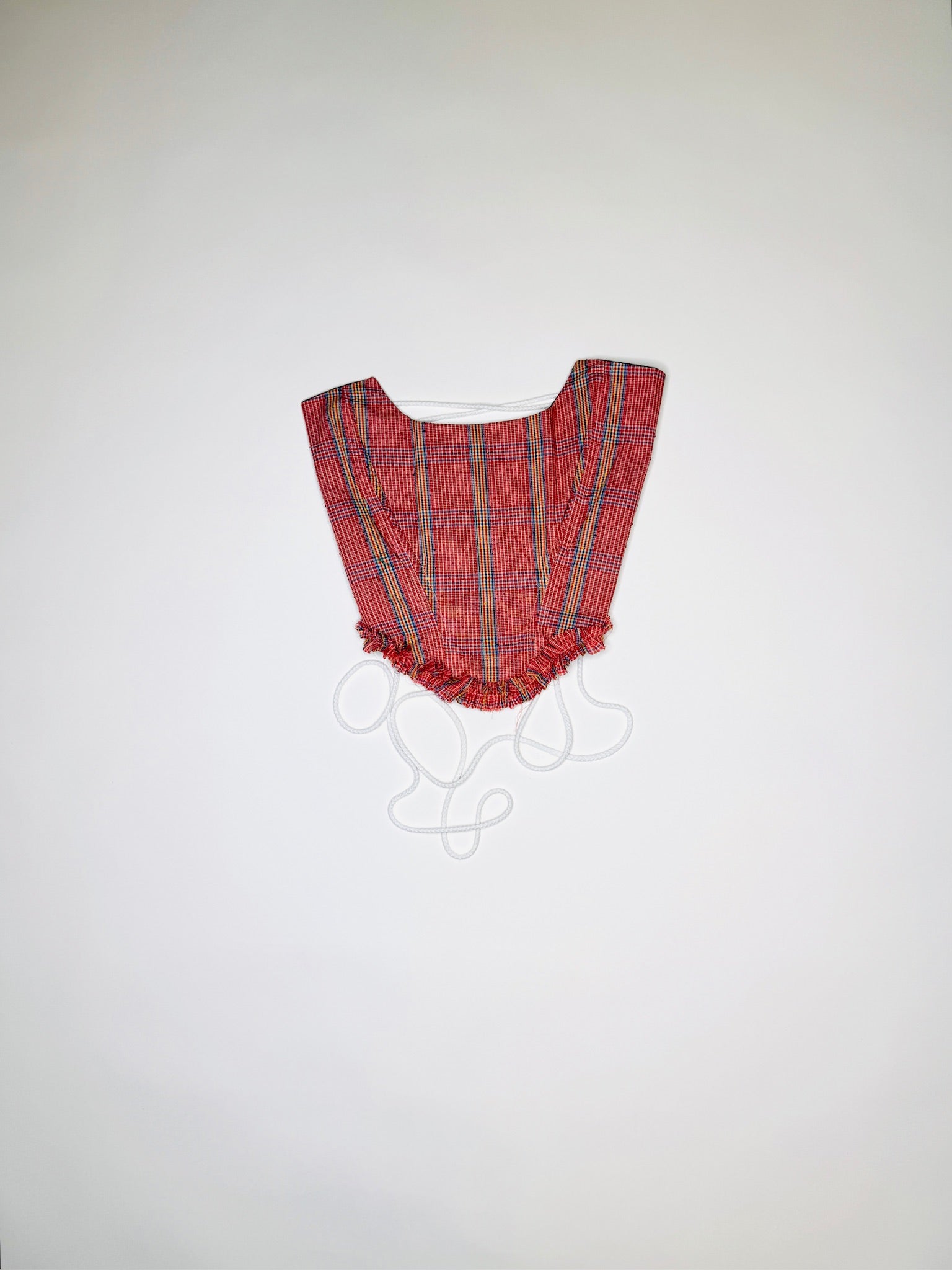 One-of-a-kind vintage plaid print corset. Handmade with 100% Linen lining. Adjustable back lace-up rope closure from sizes XS - Medium.