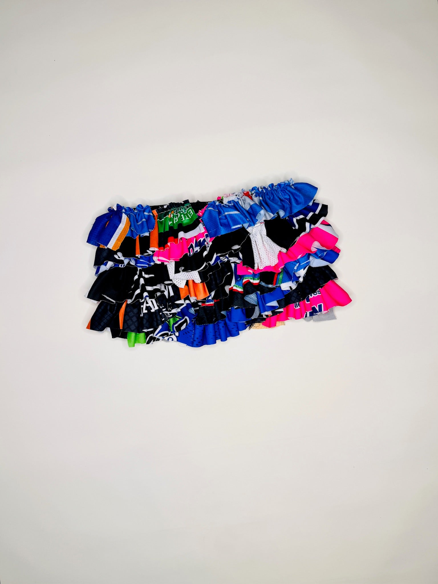 One-of-a-kind low rise ruffle skirt. Adjustable elastic waistband, will fit from XS - M.