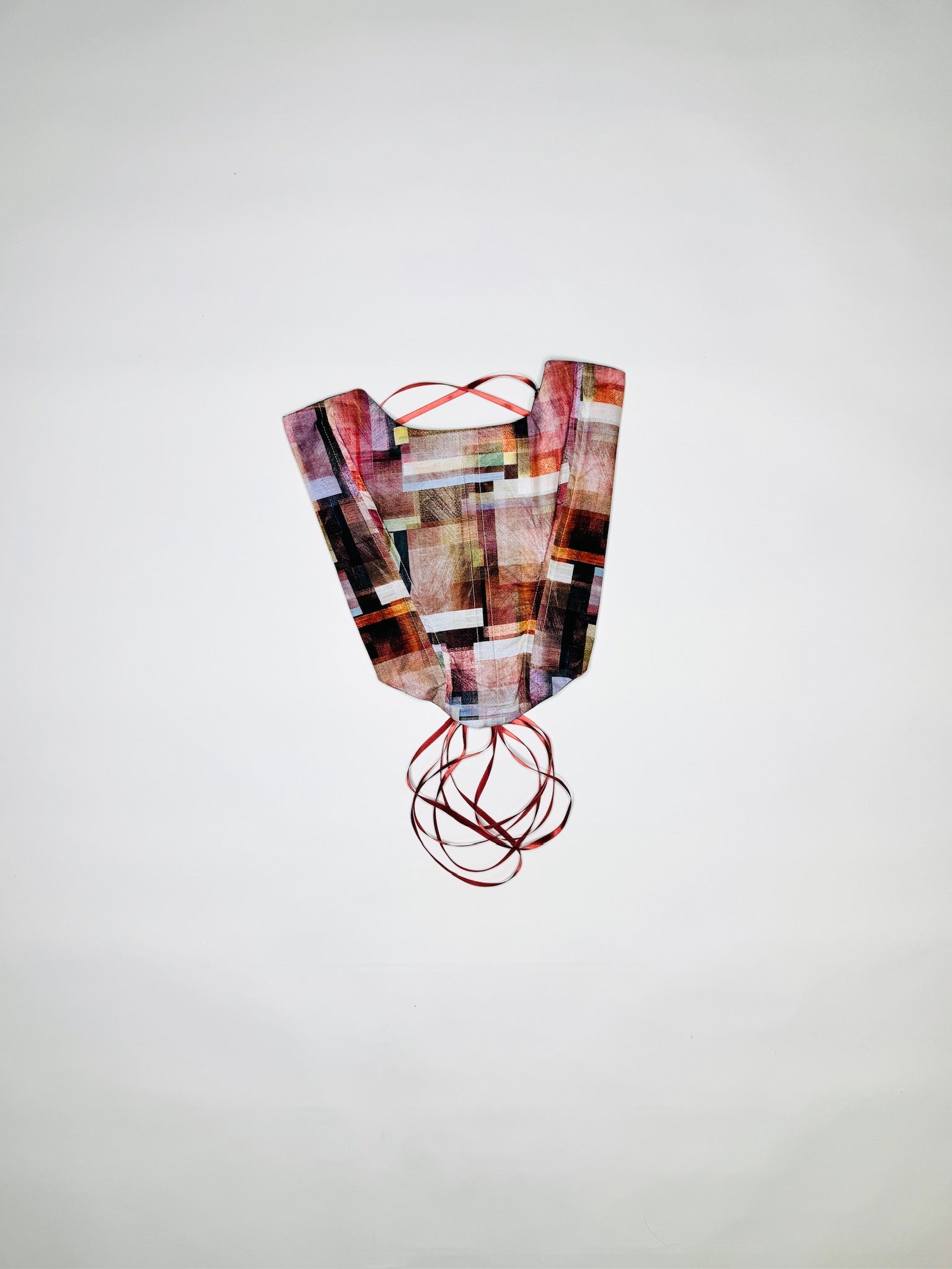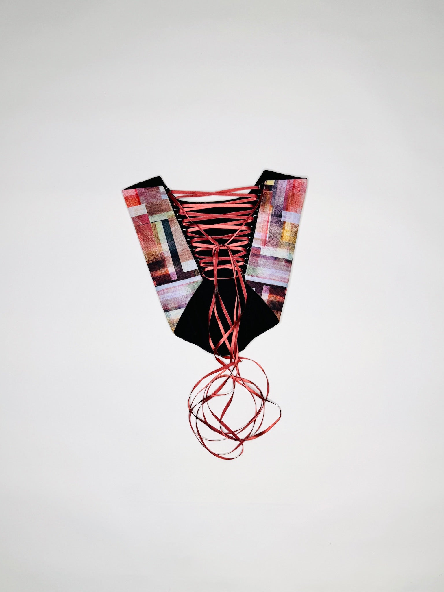 One-of-a-kind vintage digital abstract print corset. Handmade with 100% Linen lining. Back lace-up ribbon closure adjustable from sizes XS - Medium.