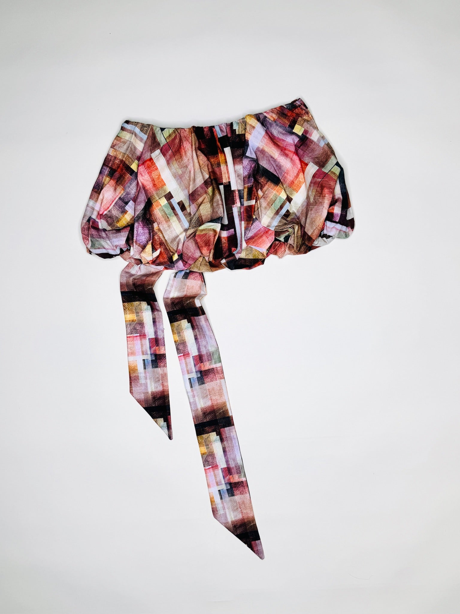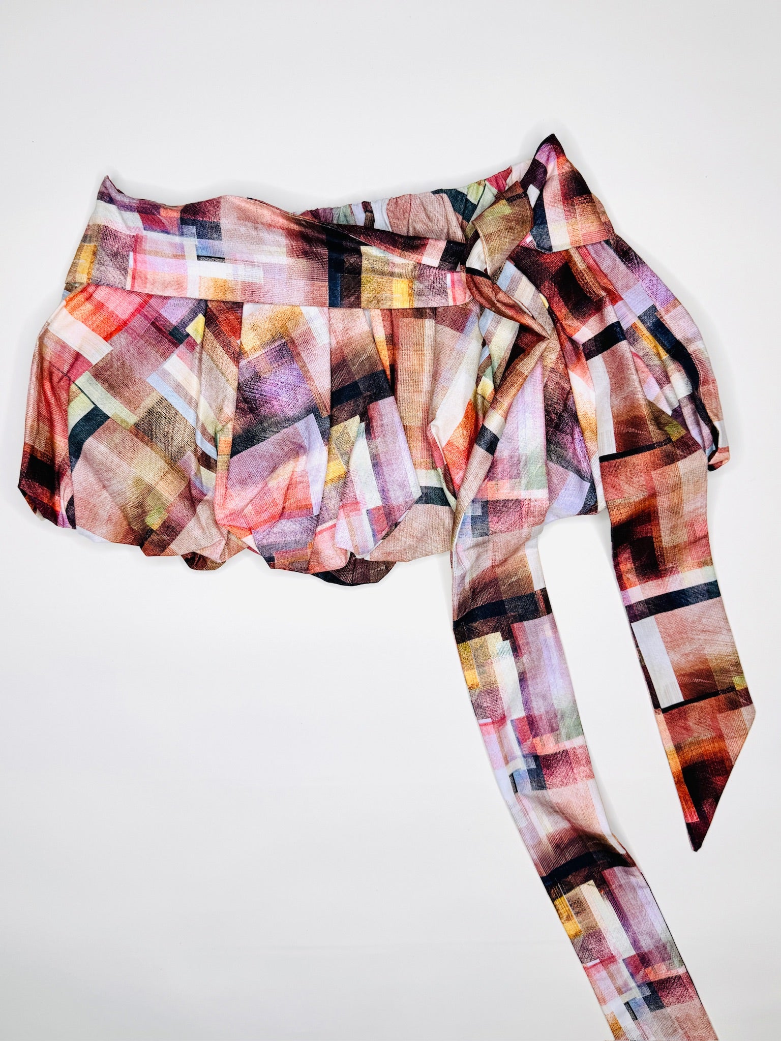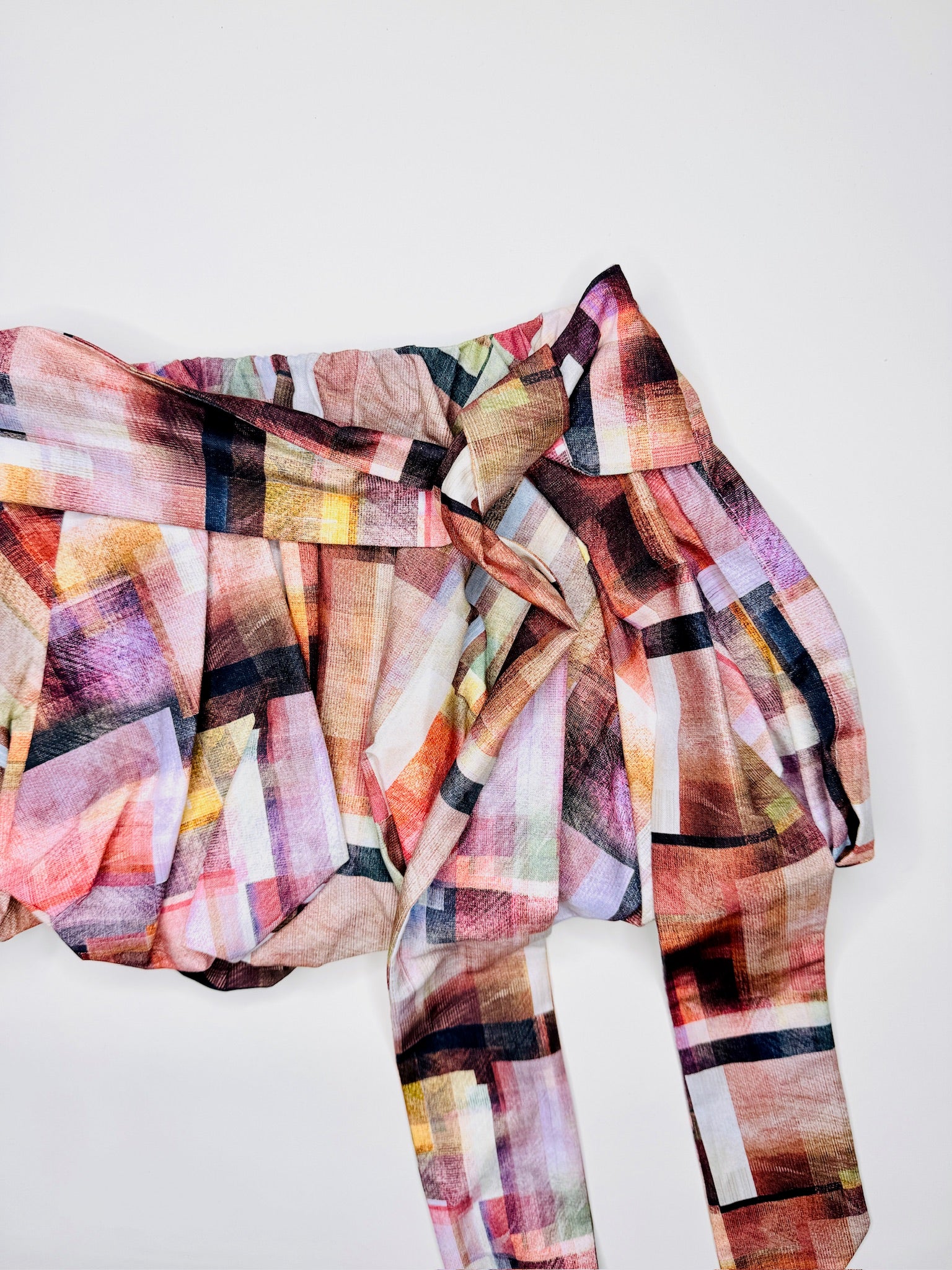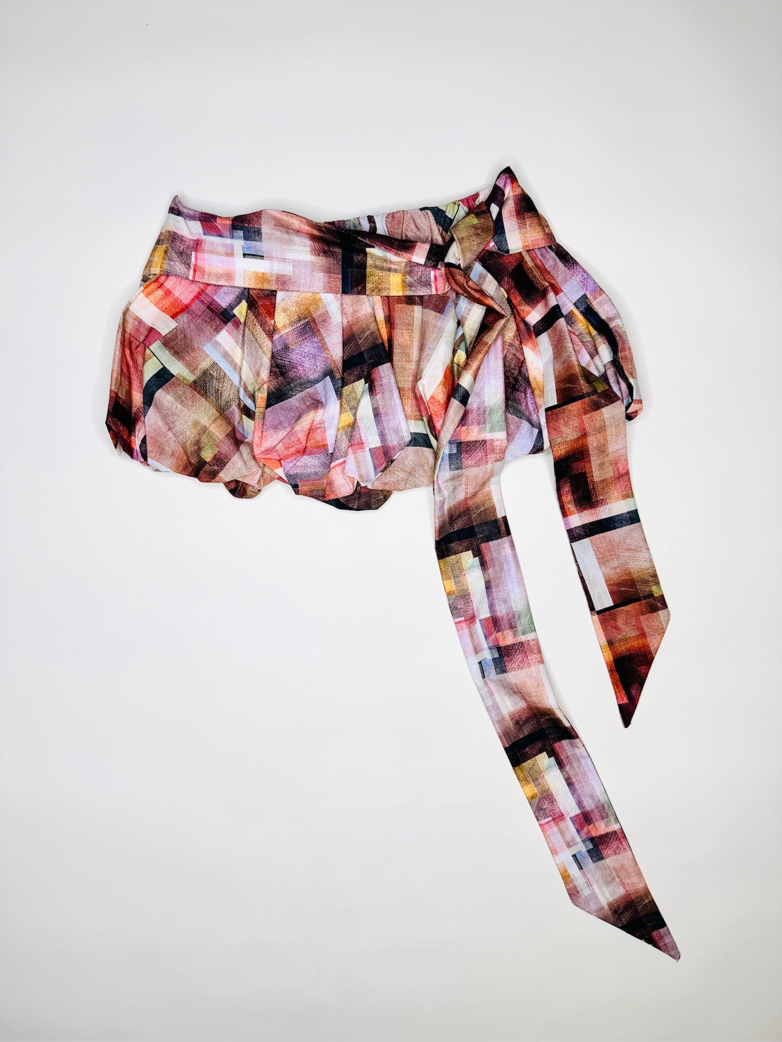 One-of-a-kind low rise digital abstract print skirt. Fully lined with a pull on, elastic waistband. Will fit size S-L.